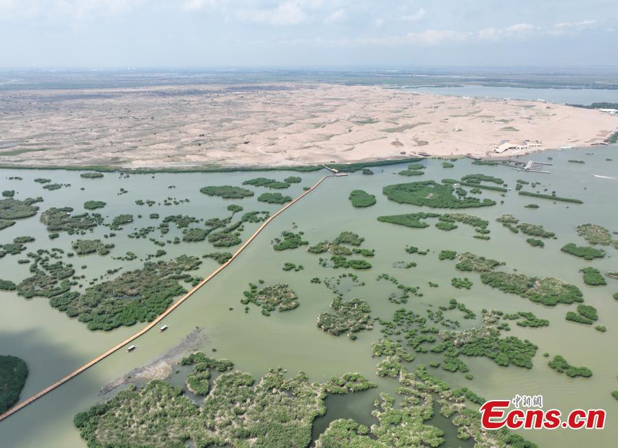 Aerial view of the Shahu Lake scenic spot in Shizuishan, Northwest China's Ningxia Hui Autonomous Region, June 2, 2024. (Photo: China News Service/Yu Jing)