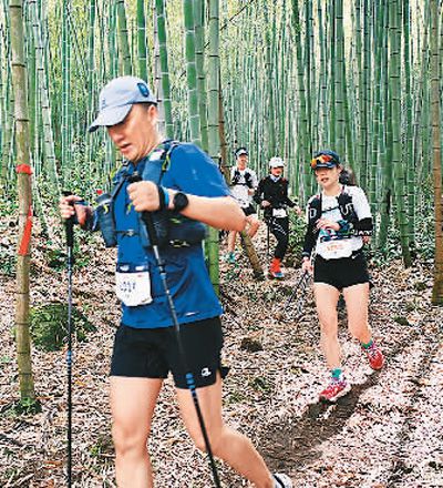 Participants compete in the Ultra-Trail Ninghai in Ninghai county, Ningbo city, east China's Zhejiang Province. (Photo/You Caibin)