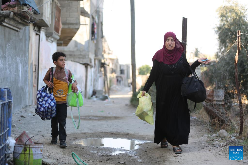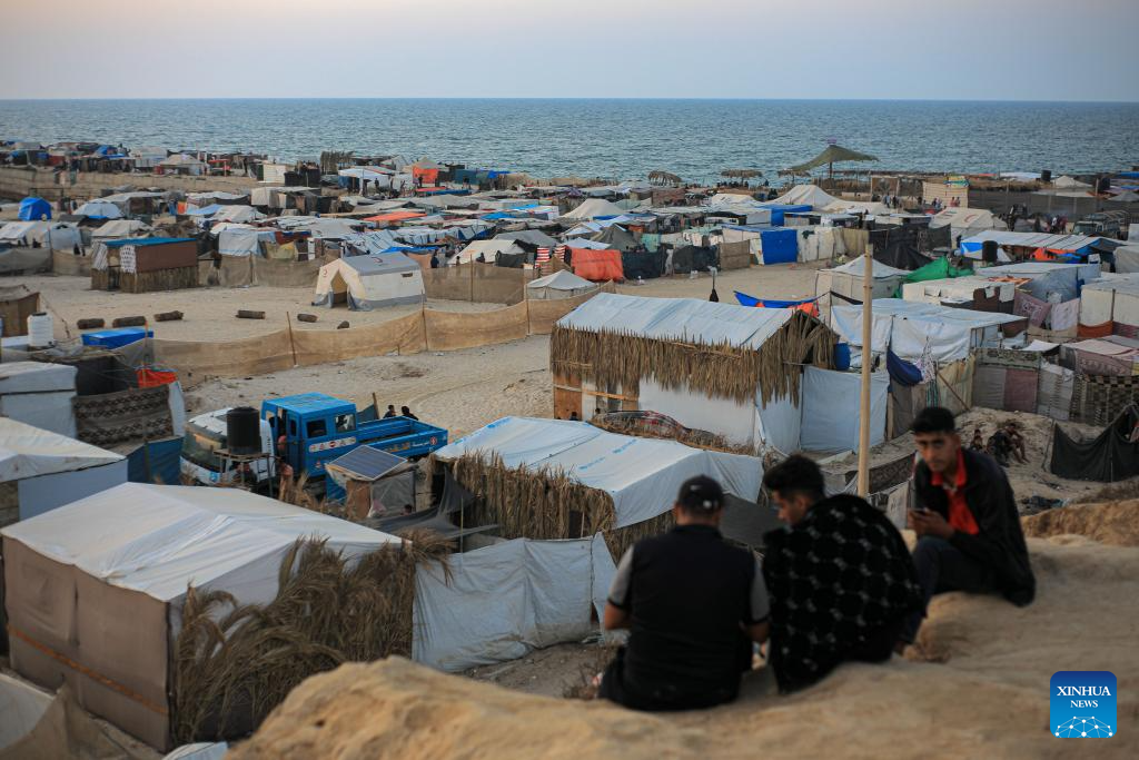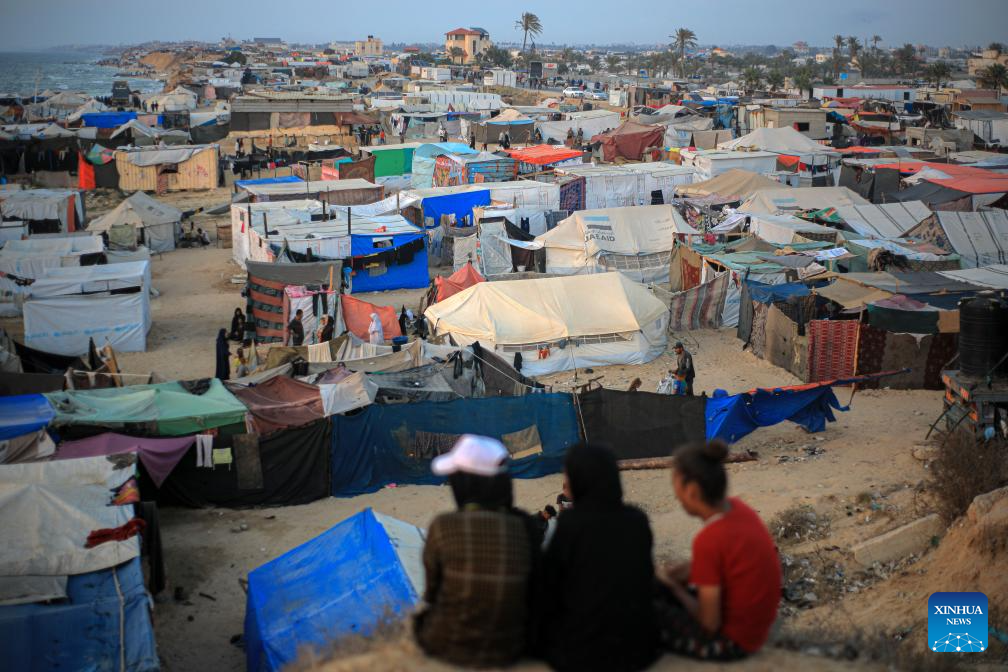 Munira al-Sayed, another displaced woman, has also been forced to sleep in her relatives' tent in Deir al-Balah, central Gaza. "This is the third time I've been displaced with my two children after my husband was killed in an Israeli airstrike in Al-Nuseirat," the 27-year-old mother told Xinhua, her eyes brimming with tears.