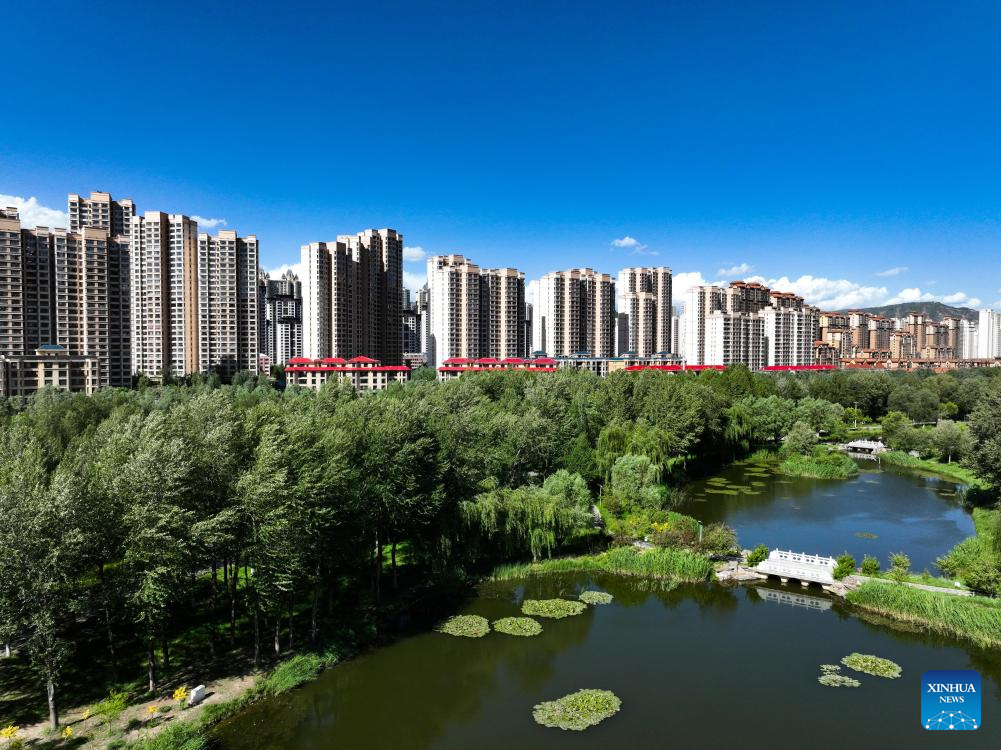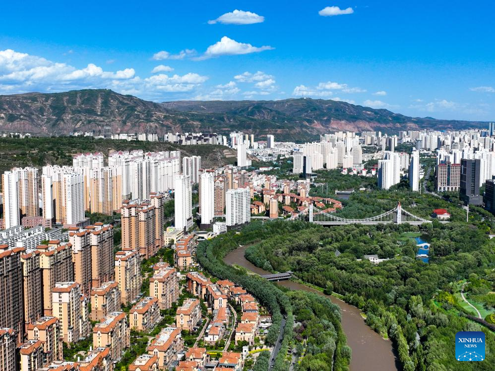 An aerial drone photo taken on June 4, 2024 shows a view of Xining, capital of northwest China's Qinghai Province. Urban ecosystem in Xining has greatly improved thanks to landscaping efforts in recent years, and the city is also more and more habitable. (Xinhua/Li Zhanyi)