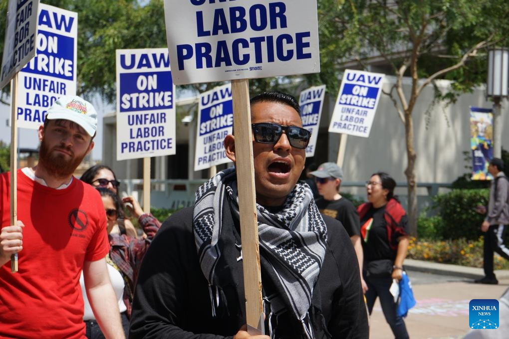 LOS ANGELES, June 5 (Xinhua) -- Academic workers at the University of California (UC), Irvine in the western U.S. state of California walked off the job on Wednesday, joining their counterparts at other campuses in the UC system on strike in response to the university's handling of pro-Palestinian protests.