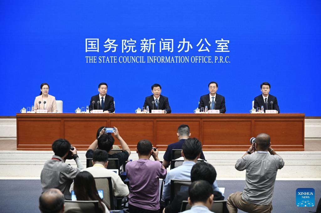 Officials of northwest China's Shaanxi Province attend a press conference on building opening-up highland for high-quality development in Beijing, capital of China, June 6, 2024. (Xinhua/Chen Yehua)