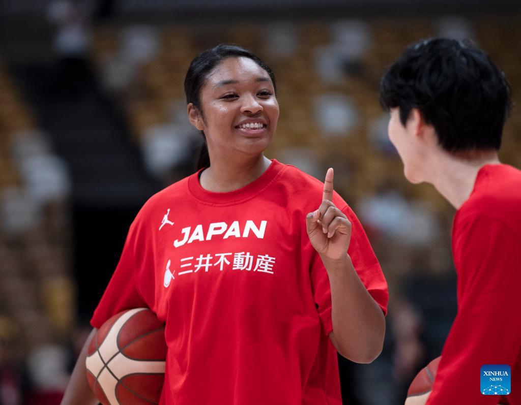 Okoye Monica (L) of Japan reacts before a friendly match between China and Japan at the women's basketball pre-Olympic warm-up series in Xi'an, northwest China's Shaanxi Province, June 7, 2024. (Xinhua/Luo Yuan)