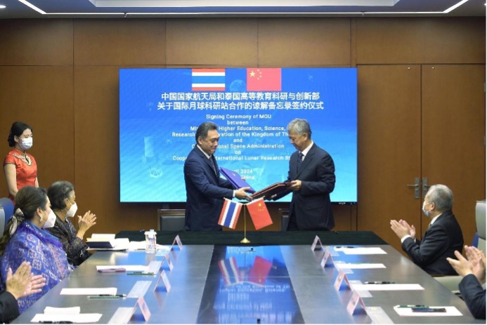 The China National Space Administration and the Ministry of Higher Education, Science, Research and Innovation of Thailand sign memorandums of understanding (MoUs) in Beijing on the exploration and peaceful use of outer space and on the cooperation for the International Lunar Research Station (ILRS), April 5.
