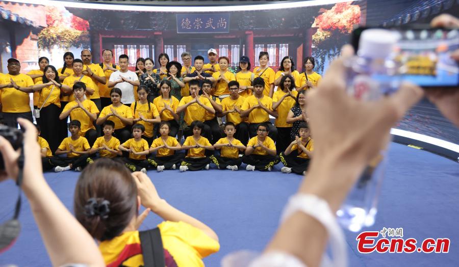The delegation watches martial arts performances by university students. (Photo: China News Service/ Yang Kejia)