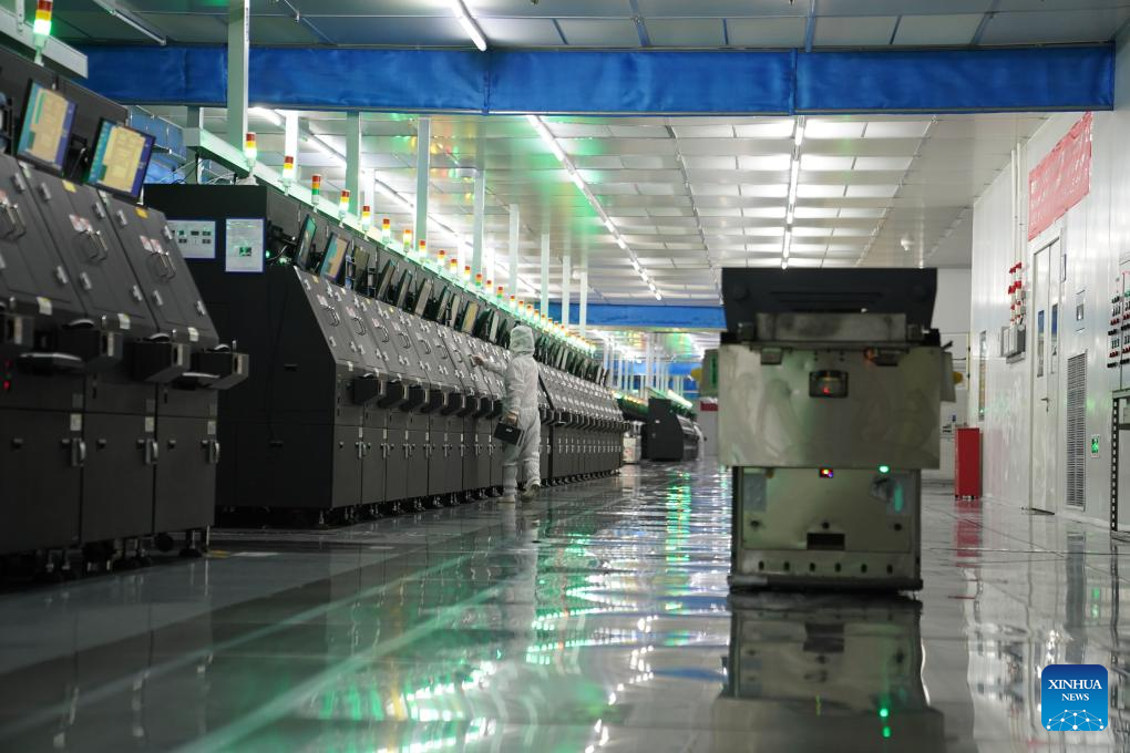 An AGV (automated guided vehicle) conducts transporting operations automatically at a workshop in Nanchang of China's Jiangxi Province, June 4, 2024. With the application of technologies such as 5G and BeiDou Navigation Satellite System, the intelligent level of traditional industries in China's central region has been upgraded in recent years. (Xinhua/Zhou Mi)