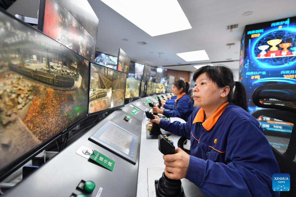A worker operates casting equipment remotely at an intelligent center of an iron and steel factory in Xiangtan, central China's Hunan Province, June 13, 2024. With the application of technologies such as 5G and BeiDou Navigation Satellite System, the intelligent level of traditional industries in China's central region has been upgraded in recent years. (Xinhua/Chen Zeguo)