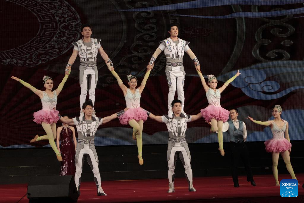 Held at the Diamond Island's Grand Theater, the glittering cultural show was organized to further promote cultural ties and people-to-people contact, as 2024 is the Cambodia-China people-to-people exchange year. (Photo by Phearum/Xinhua)