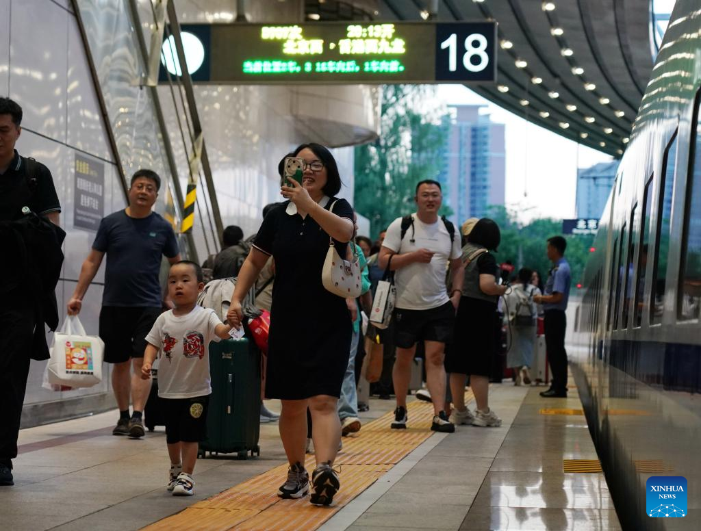 Passengers wait to board the high-speed sleeper train D909 bound for Hong Kong's West Kowloon Station at Beijing West Railway Station in Beijing, capital of China, June 15, 2024. High-speed sleeper trains linking Beijing and Shanghai with Hong Kong commenced operations on Saturday.