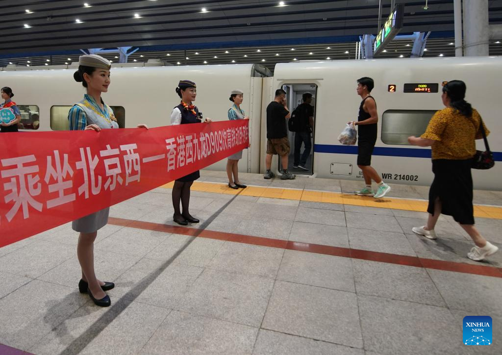 The high-speed sleeper train D909 bound for Hong Kong's West Kowloon Station departs from Beijing West Railway Station in Beijing, capital of China, June 15, 2024. High-speed sleeper trains linking Beijing and Shanghai with Hong Kong commenced operations on Saturday.