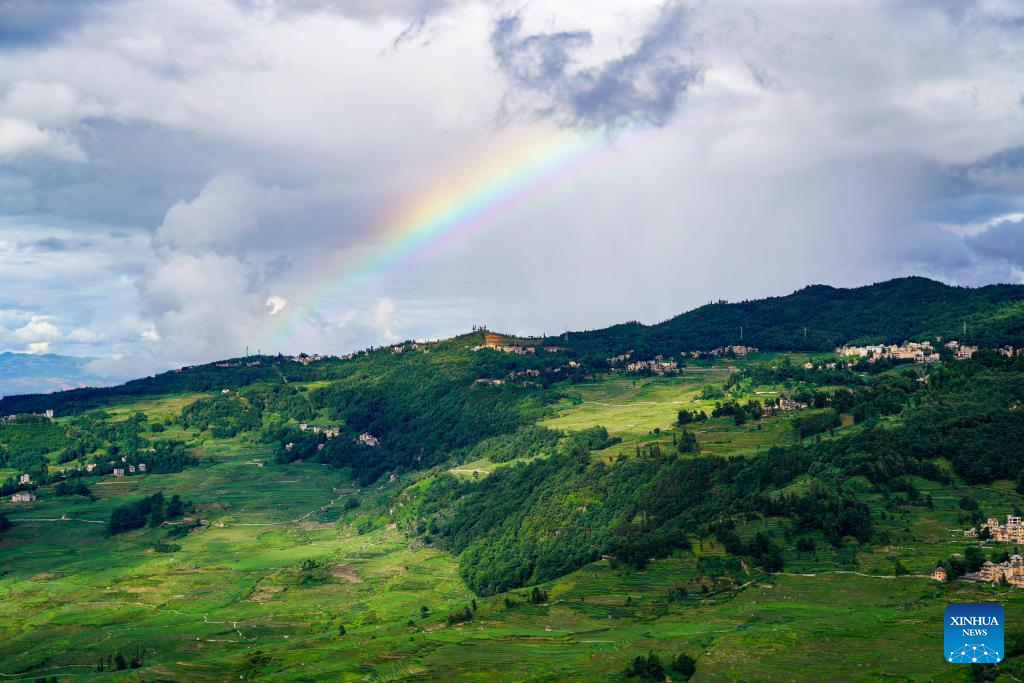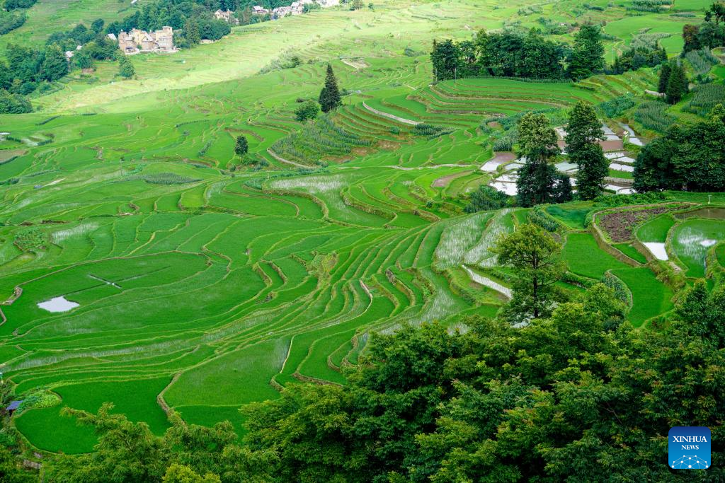 This photo taken on June 14, 2024 shows a view of Hani terraced fields in Yuanyang County of Honghe Hani and Yi Autonomous Prefecture, southwest China's Yunnan Province. (Xinhua/Wang Jingyi)