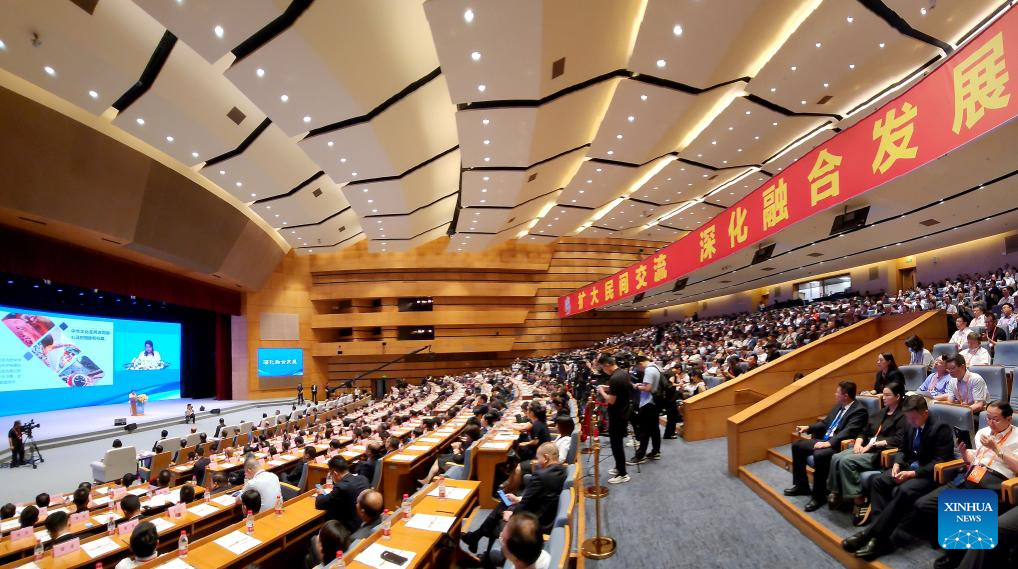 A performance is staged during the main meeting of the 16th Straits Forum in Xiamen, southeast China's Fujian Province, June 15, 2024. The main meeting of the 16th Straits Forum was held here on Saturday. (Xinhua/Wei Peiquan)