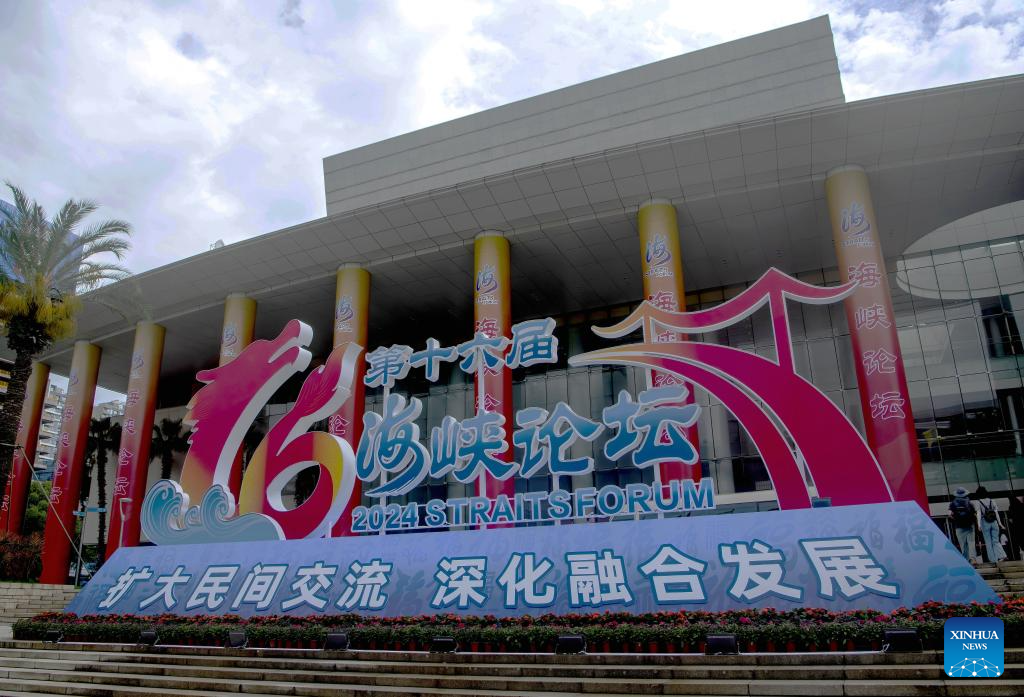 This photo taken on June 15, 2024 shows the venue of the main meeting of the 16th Straits Forum in Xiamen, southeast China's Fujian Province. The main meeting of the 16th Straits Forum was held here on Saturday. (Xinhua/Wei Peiquan)