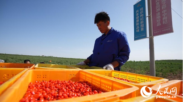 Goji berries are loaded into a car. (Photo/People's Daily Online)