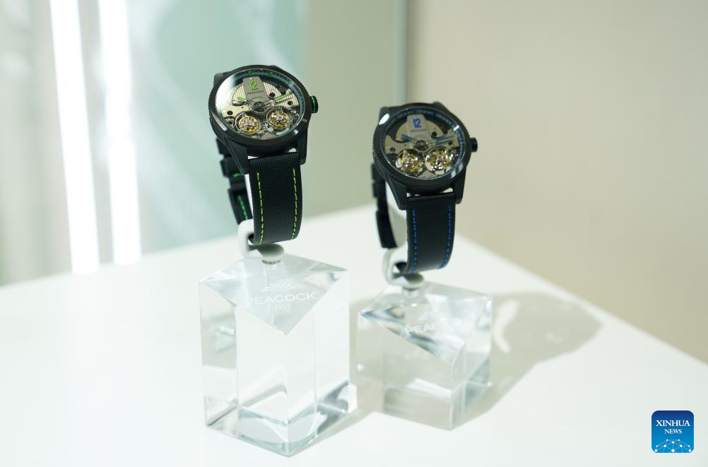 This photo taken on June 18, 2024 shows watches on display at Liaoning Peacock Watch Co., Ltd. in Dandong City, northeast China's Liaoning Province. The watch industry is one of the traditional industries in Dandong City. In recent years, Dandong has vigorously promoted technological innovation and cultivated innovative enterprises, so as to upgrade traditional industries and develop high-tech manufacturing. (Xinhua/Fan Yuqing)