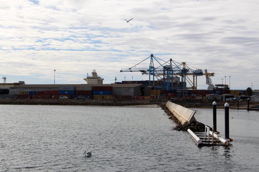 This photo taken on June 9, 2024 shows wine of Rymill Coonawarra loaded into containers to be shipped to China at the container yard of Port Adelaide, Australia. (Photo by Lyu Huijuan/Xinhua)