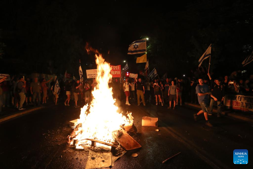 People attend a protest calling for an immediate ceasefire between Israel and Hamas in the Gaza Strip, in Jerusalem, on June 17, 2024. (Photo by Jamal Awad/Xinhua)
