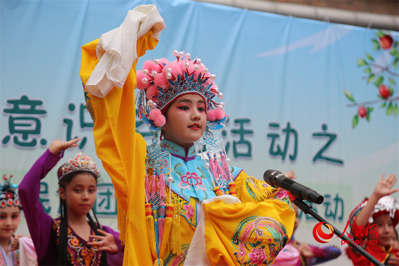 Children taking Peking Opera extracurricular classes perform Peking Opera for residents at an annual grand feast named "hundred family feast" in the Guyuanxiang community in Tianshan district, Urumqi, capital of northwest China's Xinjiang Uygur Autonomous Region. The grand feast is held annually in the community to celebrate the Corban Festival, one of the major festivals of Muslims in China, on June 17, 2024. (People's Daily Online/Li Long)