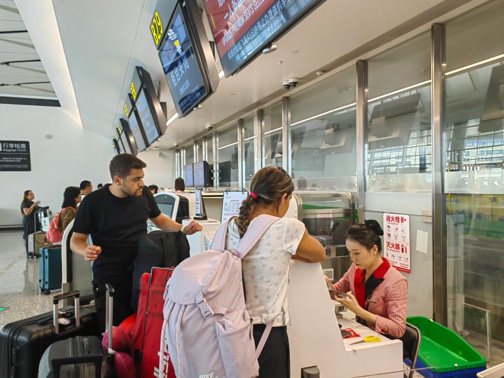 Cui Lei, deputy manager of the terminal management center at the airport, said that customs and security inspection procedures have been streamlined for foreign tourists.