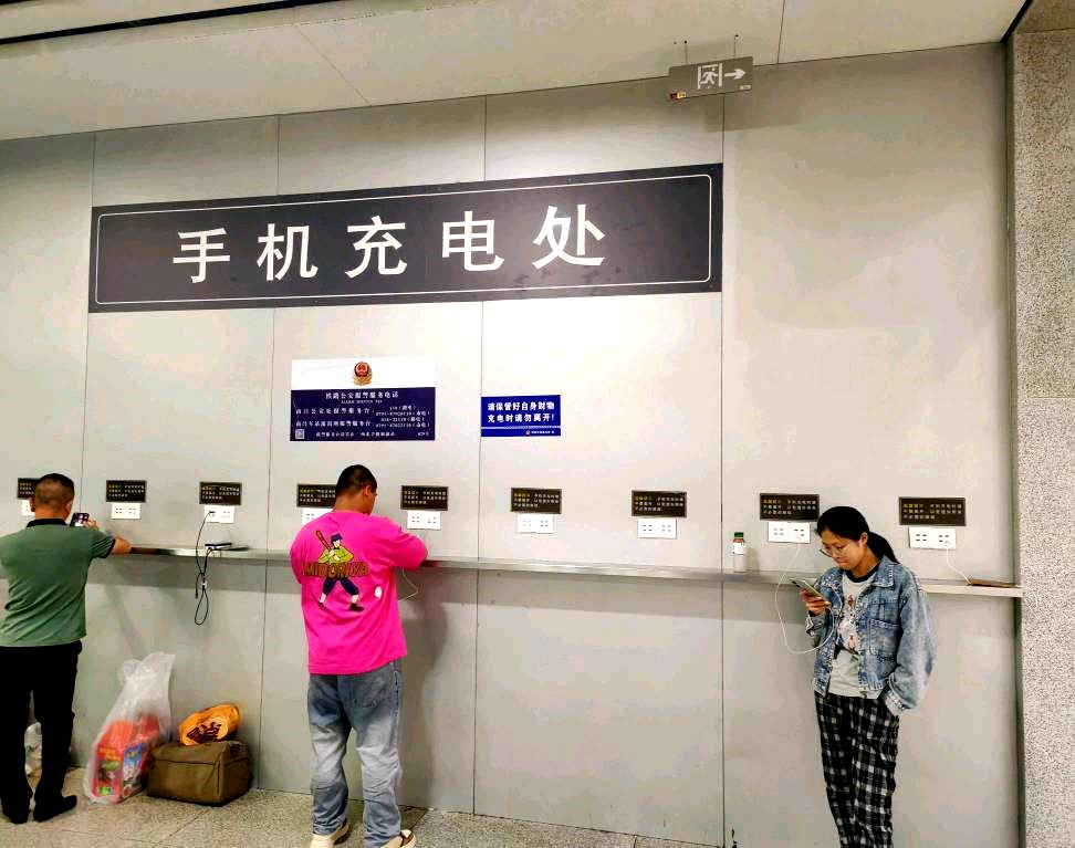 Photo taken on June 18, 2024, shows a free mobile phone charging area at Nanchang Railway Station in Nanchang, east China's Jiangxi Province. (People's Daily Online/Zhang Kaiwei)