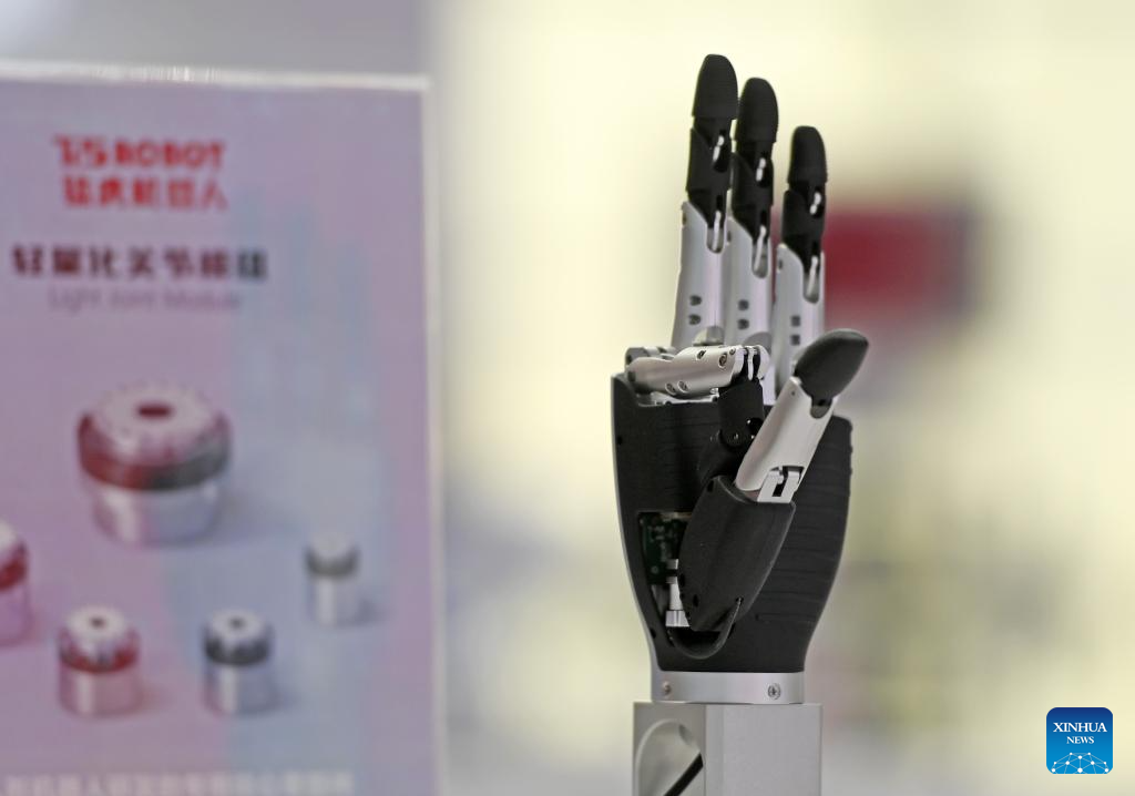 A robotic arm is displayed at the World Intelligence Expo 2024 in north China's Tianjin, June 20, 2024.
