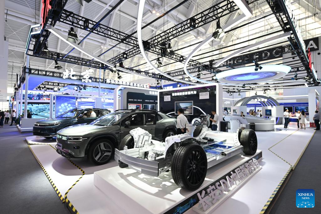 Automobiles are displayed at the World Intelligence Expo 2024 in north China's Tianjin, June 20, 2024.