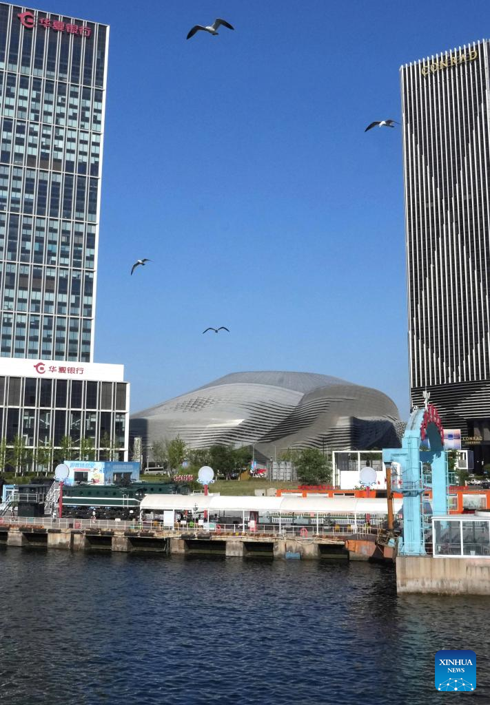 The Dalian International Conference Center, venue of the 2024 Summer Davos, is seen in Dalian, northeast China's Liaoning Province, June 16, 2024. (Xinhua/Zhang Lei)