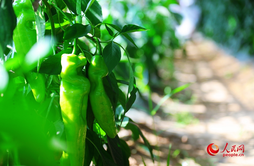Photo shows ripe chili peppers at a vegetable plantation in Wangdaifu village, Shawo township, Qixian county, Kaifeng city, central China's Henan Province. (People's Daily Online/Huo Yaping)