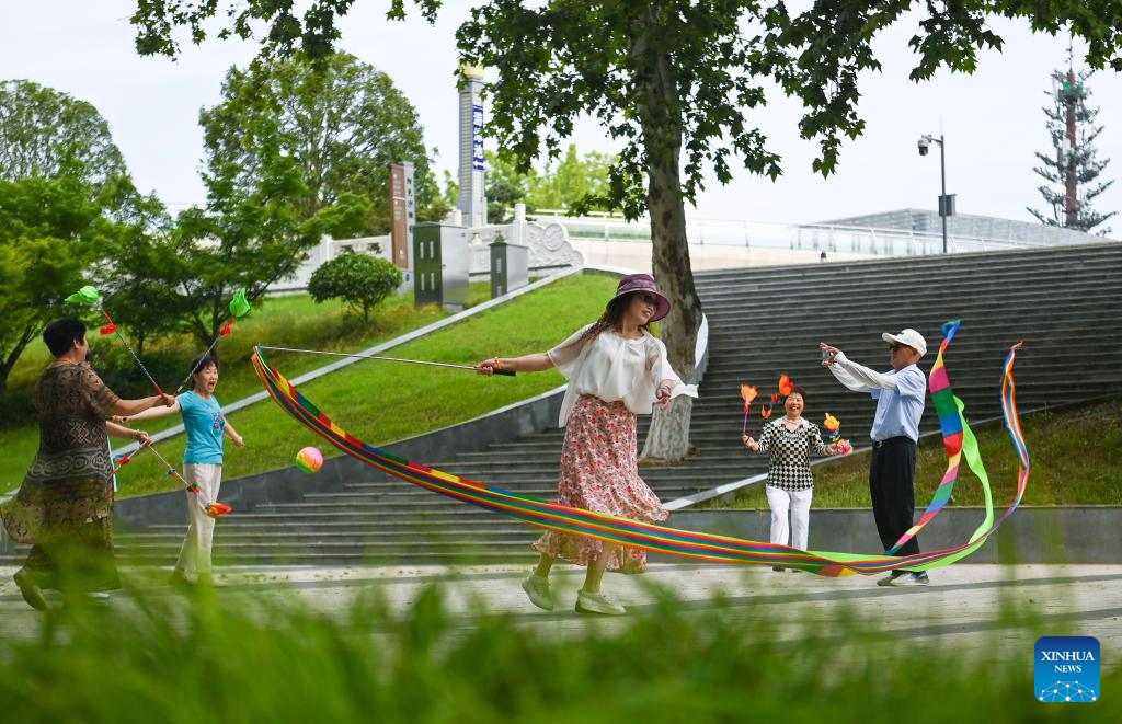Citizens do exercises at Tianhan Wetland Park in Hanzhong City, northwest China's Shaanxi Province, June 23, 2024. (Xinhua/Cai Xiangxin)