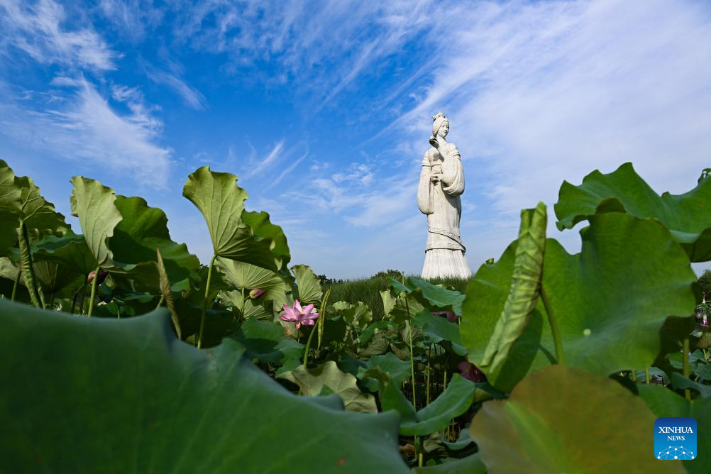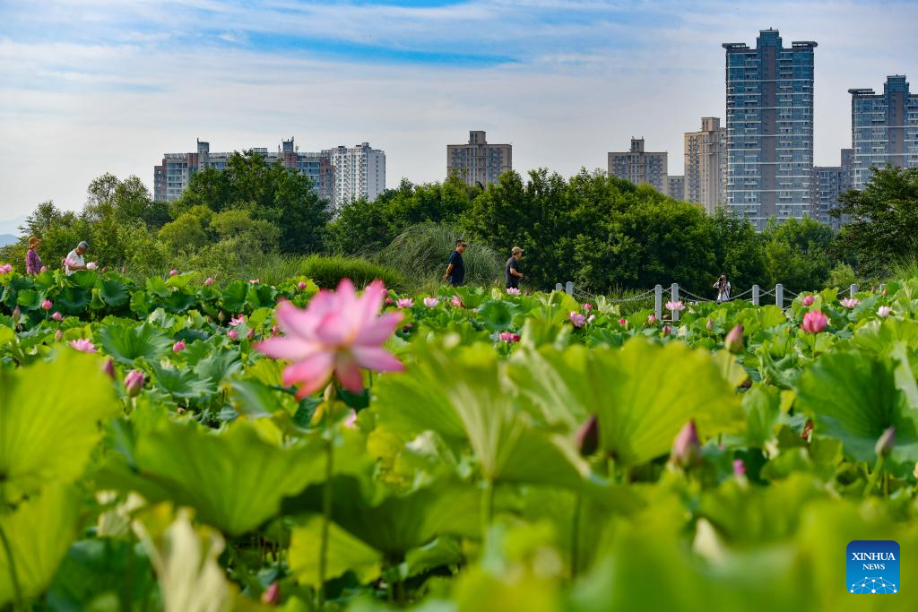 This photo taken on June 23, 2024 shows lotus flowers at Tianhan Wetland Park in Hanzhong City, northwest China's Shaanxi Province. (Xinhua/Cai Xiangxin)
