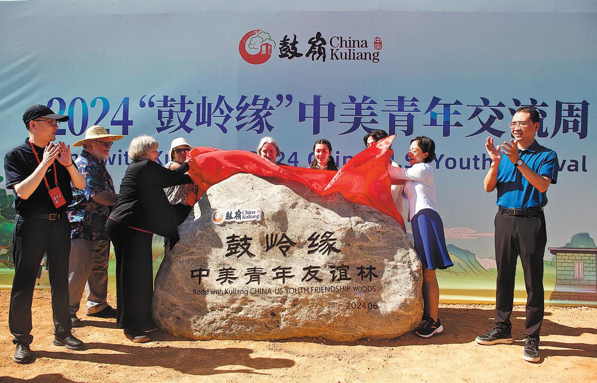 Guests from the United States attend a ceremony to unveil the Bond with Kuliang China-US Friendship Woods in Fuzhou, Fujian province, on Monday. The event was part of the ongoing Bond with Kuliang: 2024 China-US Youth Festival. (Photo by Hu Meidong / China Daily)
