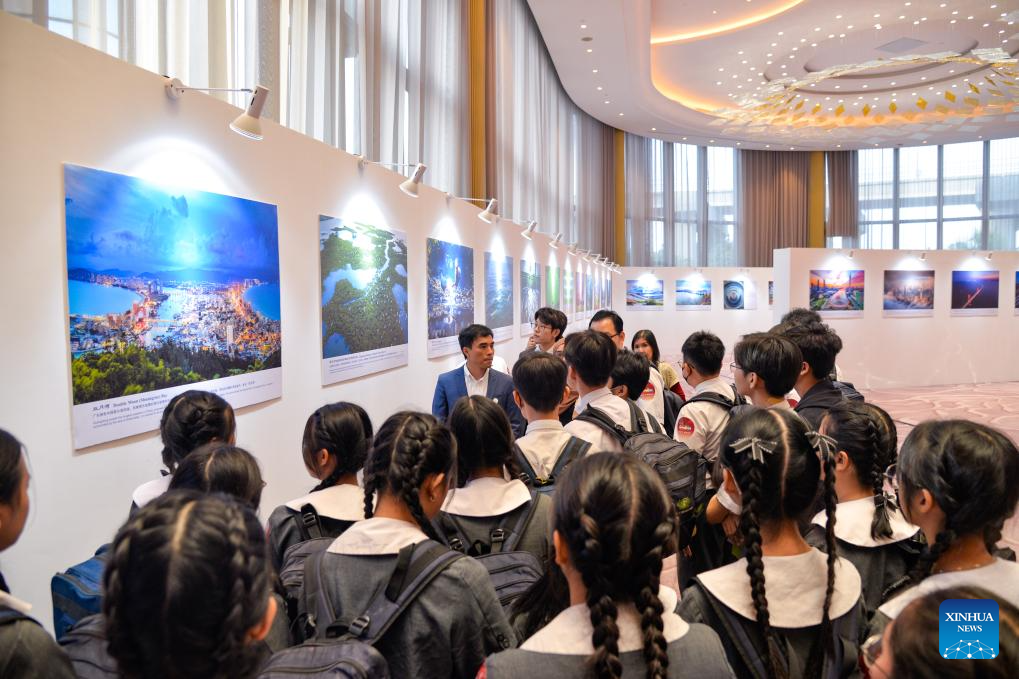 Guests visit the "Charming Guangdong" photography exhibition at the promotion conference in Jakarta, Indonesia, June 24, 2024. A Guangdong-Hong Kong-Macao Greater Bay Area tourism promotion event was held on Monday in Jakarta. More than 200 people, including representatives of relevant cultural and tourism institutions in China's Guangdong Province, representatives of the Indonesian cultural and tourism industry, and media from China and Indonesia, participated in the event. (Xinhua/Xu Qin)