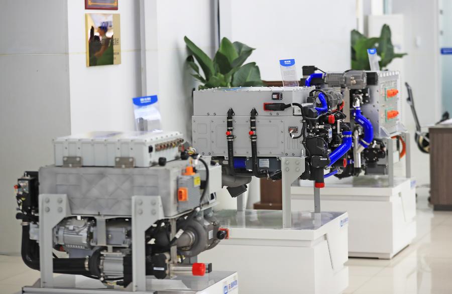 This photo taken on June 14, 2024 shows samples of the hydrogen fuel cell power system in Mixwell Technology (Dalian) Co., Ltd. in Dalian, northeast China's Liaoning Province. (Xinhua/Yang Qing)