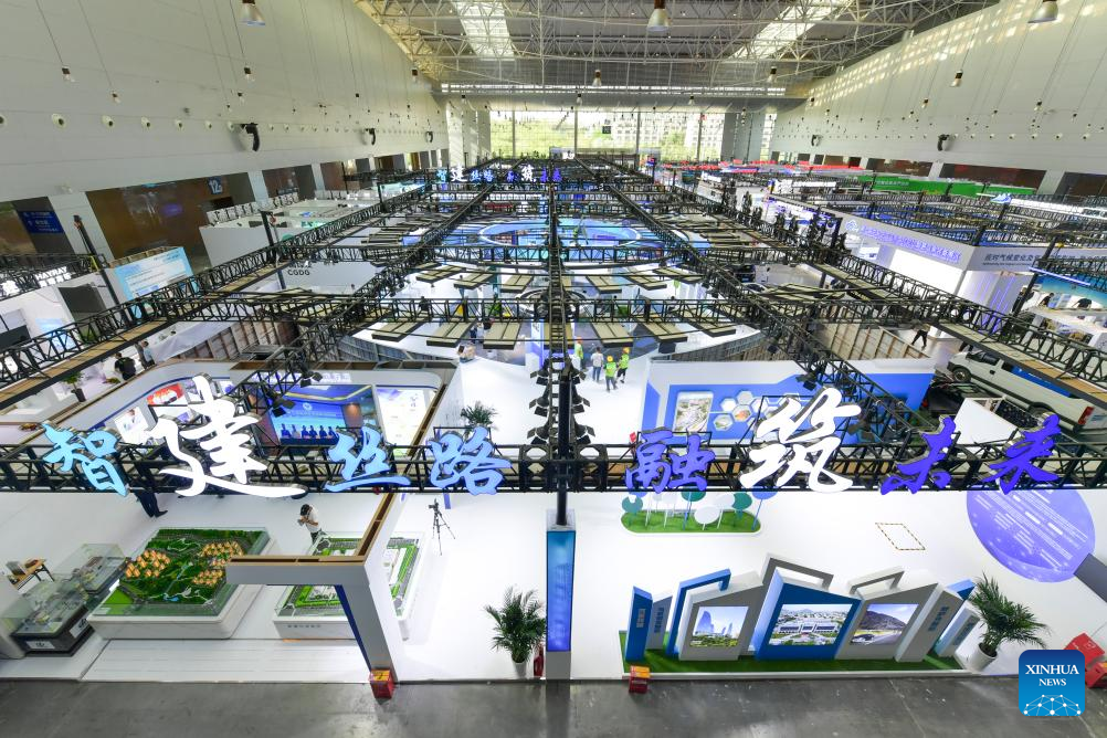 This photo taken on June 25, 2024 shows a view of the venue of the 8th China-Eurasia Expo in Urumqi, northwest China's Xinjiang Uygur Autonomous Region. The 8th China-Eurasia Expo will be held from June 26 to 30 in northwest China's Xinjiang. The expo will cover an area of 140,000 square meters with four major exhibition zones covering investment cooperation, international exhibition, special industries, and equipment manufacturing. (Xinhua/Wang Fei)