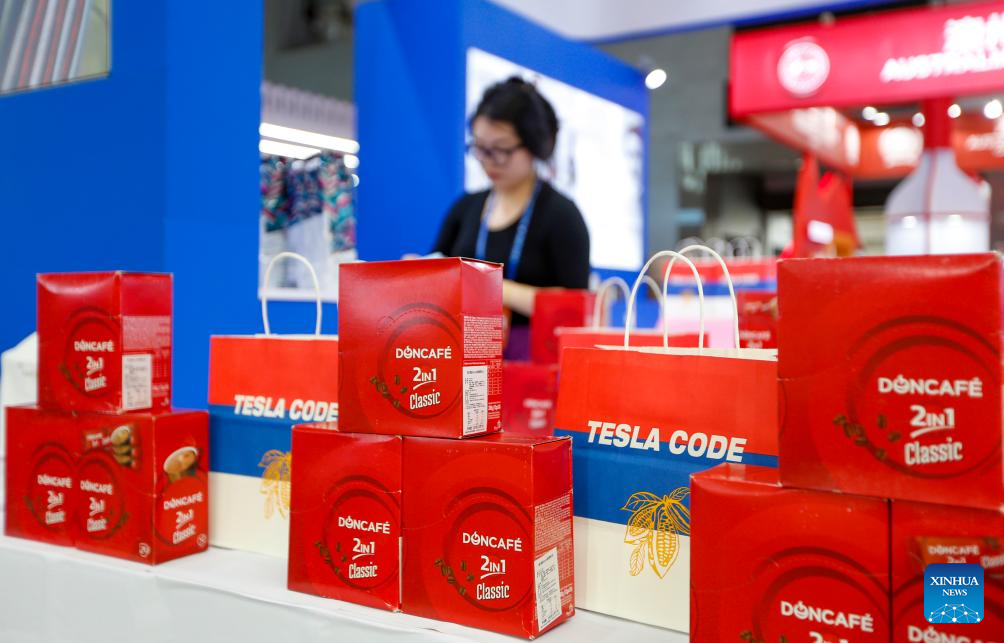 This photo taken on June 25, 2024 shows the booth of Vietnam of the 8th China-Eurasia Expo in Urumqi, northwest China's Xinjiang Uygur Autonomous Region. The 8th China-Eurasia Expo will be held from June 26 to 30 in northwest China's Xinjiang. The expo will cover an area of 140,000 square meters with four major exhibition zones covering investment cooperation, international exhibition, special industries, and equipment manufacturing. (Xinhua/Chen Shuo)