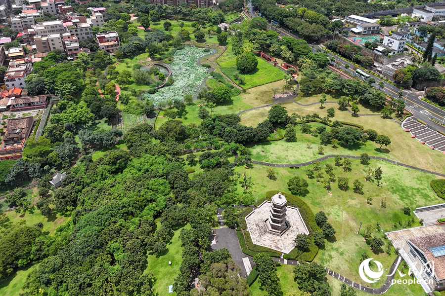 An aerial photo shows the view of Wenbita Park in Xiamen’s Tongan district, southeast China’s Fujian Province. (People’s Daily Online/Chen Bo)