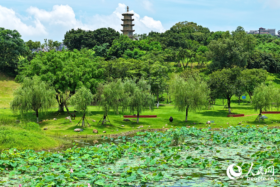 Photo shows the lotus pond in Wenbita Park in Tongan district of Xiamen, southeast China’s Fujian Province. (People’s Daily Online/Chen Bo)