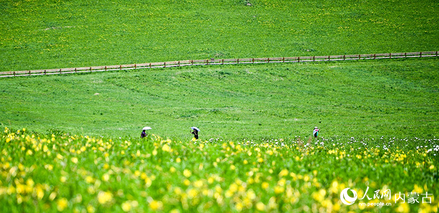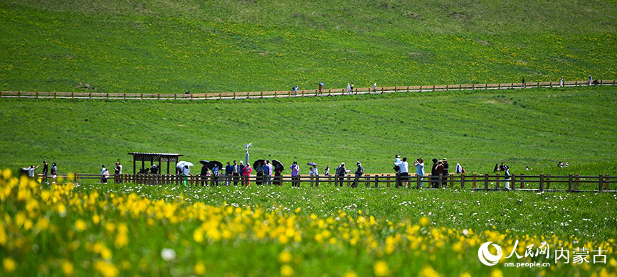 Tourists enjoy the picturesque view in the Ulgai Grassland in Xilingol League, north China’s Inner Mongolia Autonomous Region. (People’s Daily Online/Li Rui)