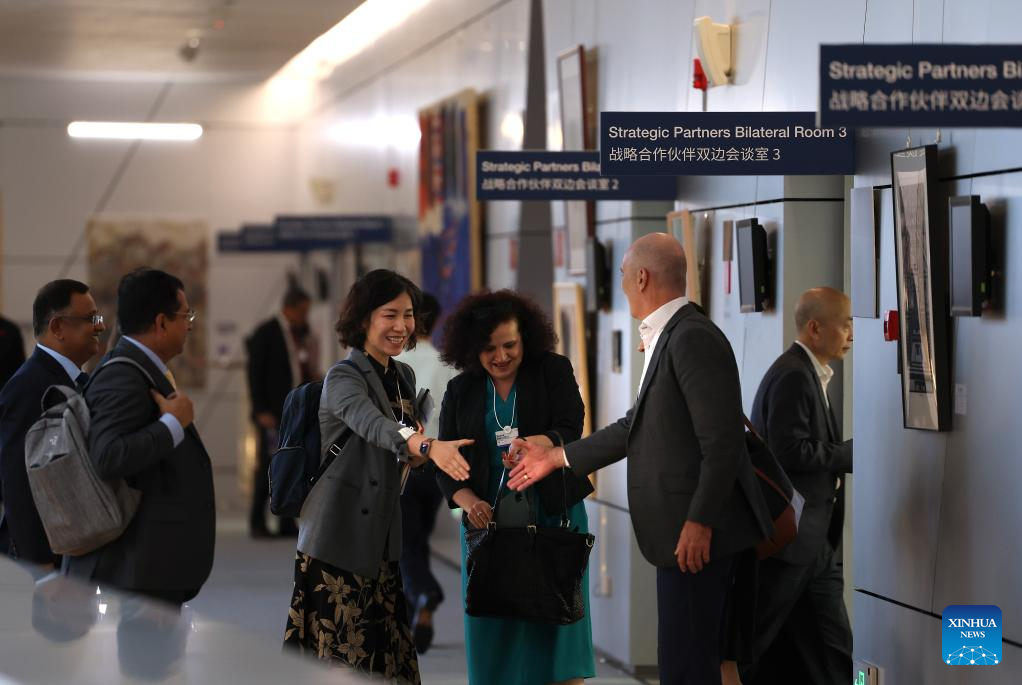 Participants shake hands outside a strategic partners bilateral room during the 15th Annual Meeting of the New Champions, also known as the Summer Davos, at the Dalian International Conference Center in Dalian, northeast China's Liaoning Province, June 26, 2024. Featuring the theme "Next Frontiers for Growth," the event, held from June 25 to 27, gathers over 1,700 leading figures from the public and private sectors in more than 100 countries and regions to jointly explore new drivers and pathways for global economic growth. (Xinhua/Yao Jianfeng)