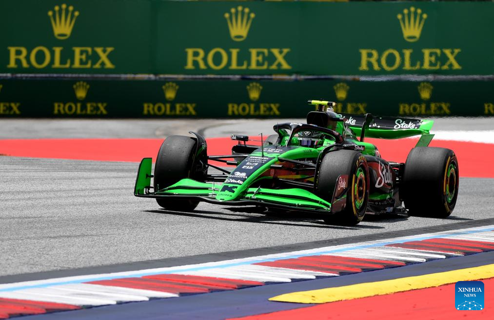 Kick Sauber's Chinese driver Zhou Guanyu competes during the first practice session of the Formula 1 Austrian Grand Prix in Spielberg, Austria, June 28, 2024. (Xinhua/He Canling)