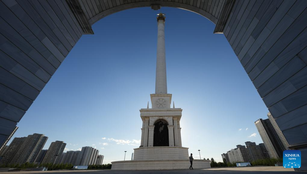 This photo taken on June 29, 2024 shows a monument at the Independence Square of Astana, Kazakhstan. (Xinhua/Wang Jianhua)