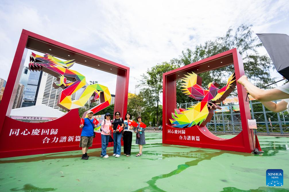 People pose for photos at a celebration activity marking the 27th anniversary of Hong Kong's return to the motherland in Victoria Park in Hong Kong, south China, June 29, 2024. (Xinhua/Zhu Wei)