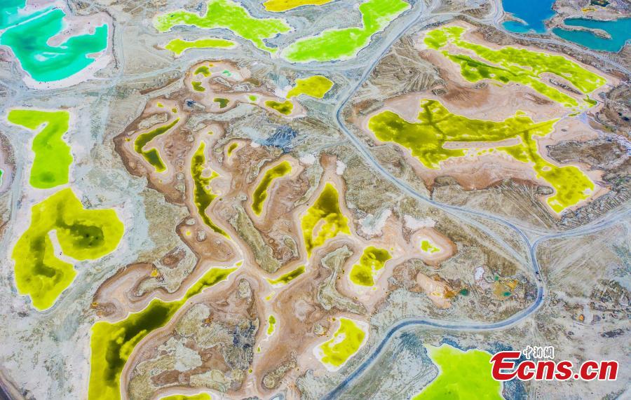 The aerial photo shows the stunning scenery of Emerald Lake in Dachaidan Town, Haixi Mongolian and Tibetan Autonomous Prefecture, Qinghai Province, June 29, 2024. (Photo: China News Service/Zhao Guangliang)