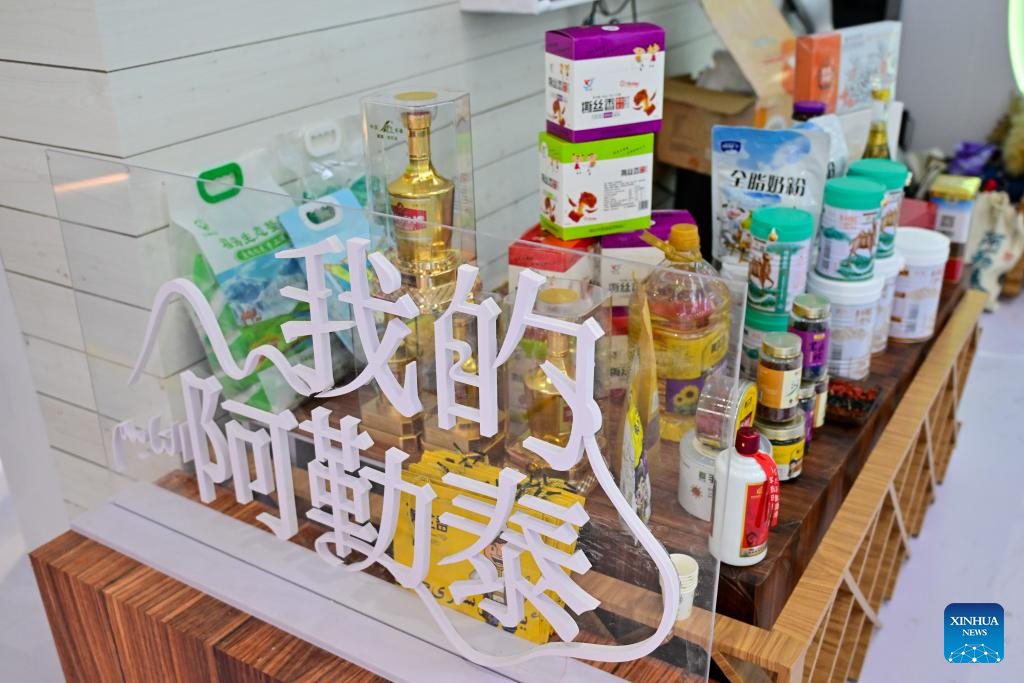 Xinjiang specialties are displayed at the 8th China-Eurasia Expo in Urumqi, northwest China's Xinjiang Uygur Autonomous Region, June 27, 2024. Themed "New Opportunities of Silk Road, New Vitality for Eurasian Cooperation," the five-day expo that opened on June 26 has drawn over 1,900 participants from 50 countries, regions and international organizations, showcasing over 6,000 varieties of products. (Xinhua/Ding Lei)