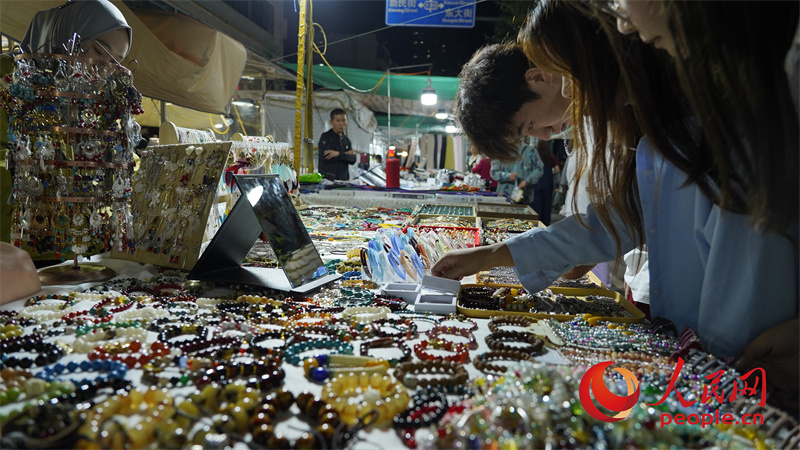 Tourists buy handcrafts at the Daxinjie night market in Xining, capital city of northwest China's Qinghai Province. (People's Daily Online/Gan Haiqiong)