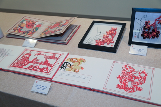 Displays of ancient Xue buttons, Tengzhou woodblock prints, and paper cuttings showcase the cultural heritage of Zaozhuang. (Photo/Ji He)