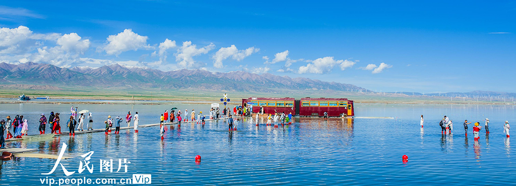 Tourists enjoy the gorgeous scenery in the Chaka Salt Lake Scenic Area in Ulan county, Haixi Mongolian and Tibetan Autonomous Prefecture, northwest China’s Qinghai Province, on July 1, 2024. (vip.people.com.cn/Zhao Guangliang)