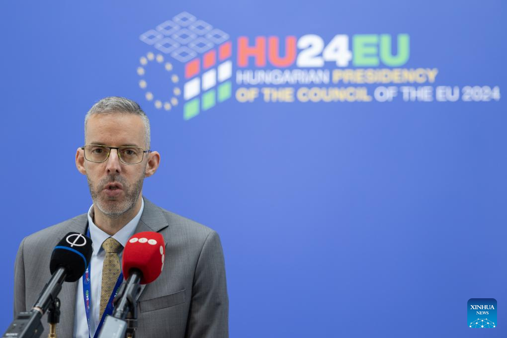 Miguel Sanz, president of the European Travel Commission, speaks at a press conference of the Europe-China Tourism Dialogue in Budapest, Hungary, on July 4, 2024. A Europe-China tourism dialogue opened in Budapest on Thursday, aiming to speed up the recovery of tourism between the two sides. (Photo by Attila Volgyi/Xinhua)