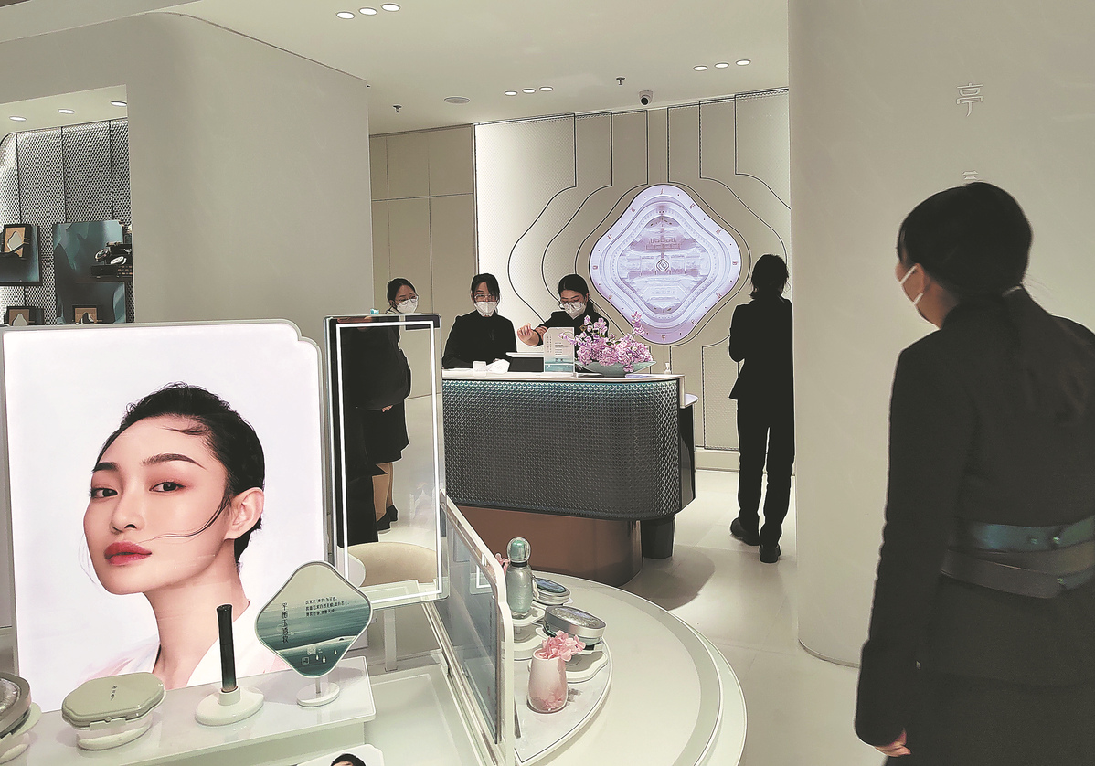 Consumers shop at domestic beauty brand Huaxizi's store near the West Lake in Hangzhou, Zhejiang province, in December. (Photo/China Daily)