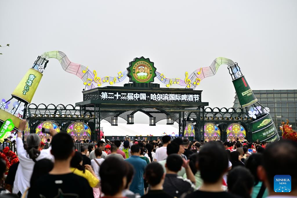 This photo taken on July 6, 2024 shows a scene at the 22nd China Harbin International Beer Festival in Harbin, northeast China's Heilongjiang Province. The 22nd China Harbin International Beer Festival opened here on Saturday. (Xinhua/Ding He)
